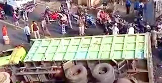 Truk Bermuatan Batubara Alami Kecelakaan Dan Terbalik di Jalan Sukabumi -Bogor